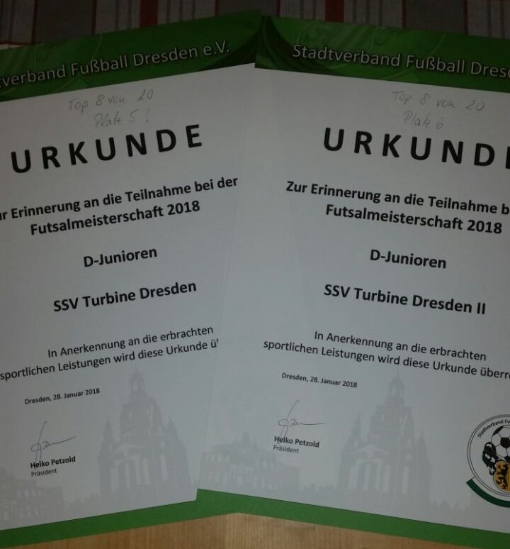 Beide Mannschaften waren mit knapper Besetzung, mal ein und mal zwei Wechsler, vertreten. Dies hatte jedoch auch viel Spielzeit für alle zur Folge. Diese wurde auch genutzt. Nachdem man das erste Spiel zum Aufwachen gebraucht hatte, wärmte man sich dann im zweiten Spiel schon auf, um dann das dritte Spiel zu gewinnen. Mit ein paar knappen Niederlagen, stießen Turbine 1 und Turbine 2 in der Finalrunde um Platz 21 aufeinander. Es wurde ein spannendes Spiel auf Augenhöhe und mit einem Tor von Turbine 1 entschieden. Plätze 21 und 22 von 32 gingen so an Turbine. Eine höhere Platzierung wäre auf jeden Fall drin gewesen – die Plätze 1-3 und goldene Pokale dann wohl eher nicht.