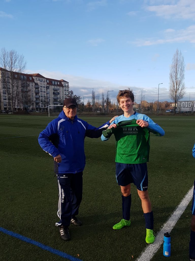 Dieses Team hat unsere B schon gefordert. Nach dem Spiel wurde Nick für seine Halbjahresleistung mit einem Original-Trikot vom FC Augsburg inklusive aller Unterschriften geehrt.