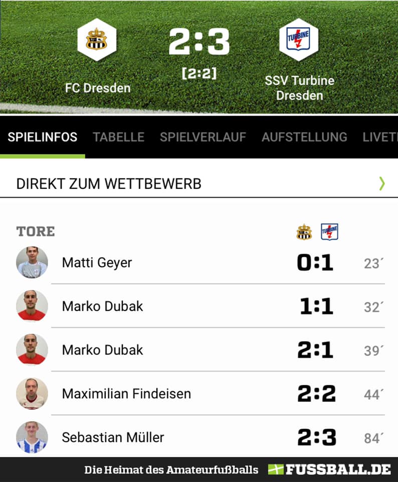3 wichtige Punkte FC Dresden und der SSV Turbine Dresden lieferten sich ein spannendes Spiel, das 2:3 endete. Beobachter hatten beiden Mannschaften im Vorfeld gleich gute Siegchancen eingeräumt – doch nur eine wusste sich knapp durchzusetzen. Für den Führungstreffer des SSV Turbine Dresden zeichnete Matti Geyer verantwortlich (23.). Marko Dubak schockte die Mannschaft von Trainer…